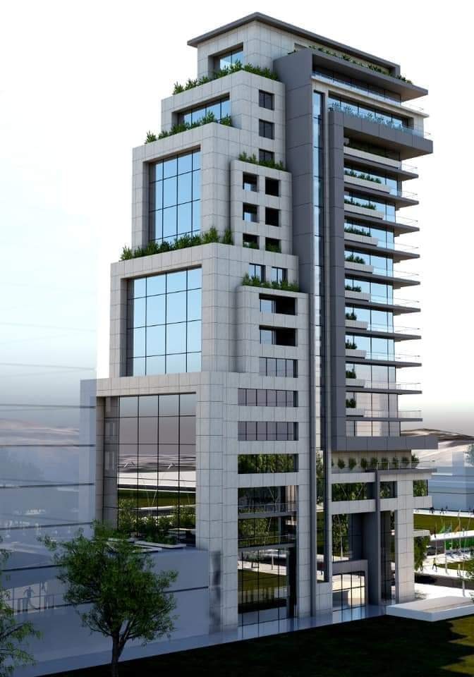 -15 طابق سكني تختلف مساحة كل طابق عن الآخر بسبب التصميم المعماري المتدرج