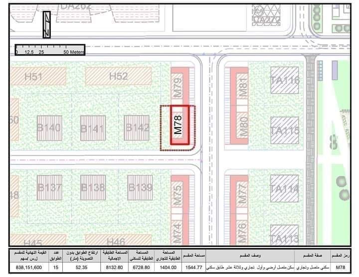 • تبلغ مساحة أرض المقسم 1545 متراً