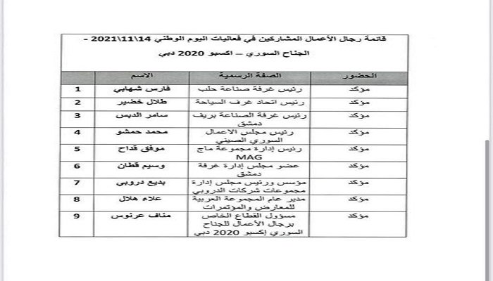 وصل اليوم الى دولة الإمارات العربية المتحدة وفد من رحال الاعمال السوريين لحضور اليوم الوطني لسورية في اكسبو دبي يوم الأحد المقبل.
