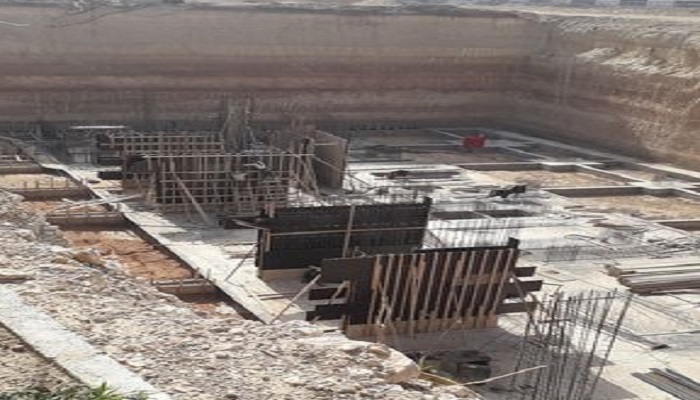 مع صب قواعدالجدران الاستناديه