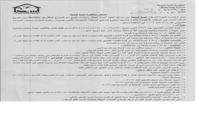 وتنفيذ المقسم Hb480 من مقاسم السكن البديل بباسيليا سيتي بقيمة ٣٠مليار ليرة للأول وبقيمة ٣٢ مليار ليرة للمقسم الثاني.