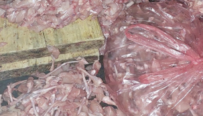 كما ضبطت حماية المستهلك، إحدى الدوريات مركبة نوع “سوزوكي مغلقة” في مدينة جرمانا بريف دمشق وفي داخلها 350 كغ من مخلفات الفروج (نتر فروج) غير صالحة للاستهلاك البشري.