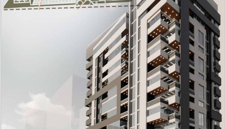 - المبنى السكني: 12 طابقاً بمساحة تقارب 800 م² لكل طابق.